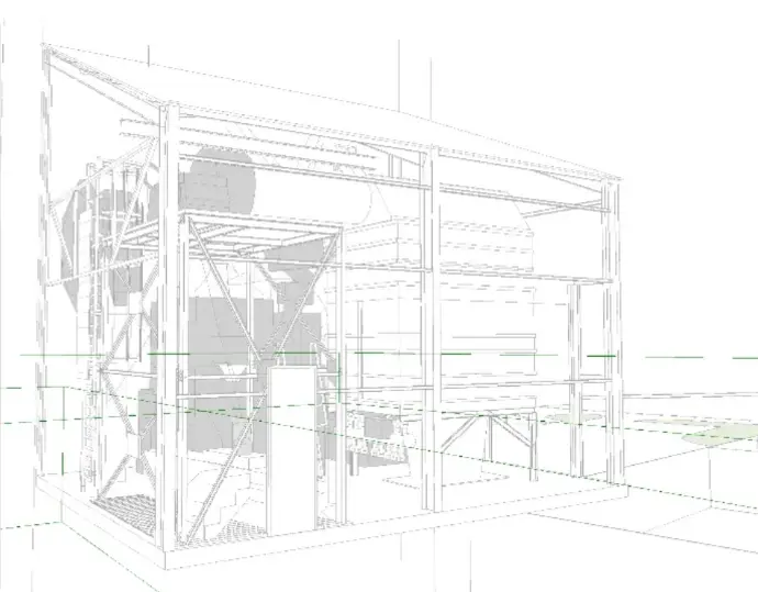 Défi : Modéliser avec précision une infrastructure complexe, marquée par un enchevêtrement dense de tuyaux et structurer la maquette pour distinguer clairement les différents procédés industriels internes au silo.